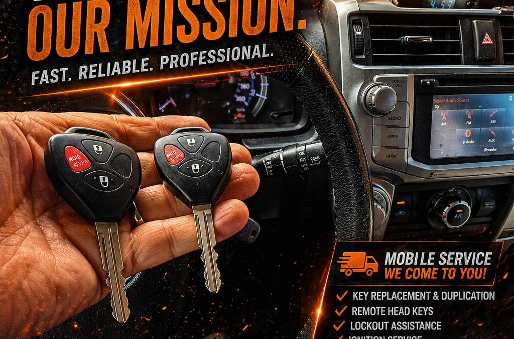 Proud to offer expert Toyota 4Runner key programming, OEM remote head key replacement, Toyota key fob service, transponder key cutting, and automotive locksmith solutions throughout Panorama Village, Conroe, The Woodlands, and Montgomery County.